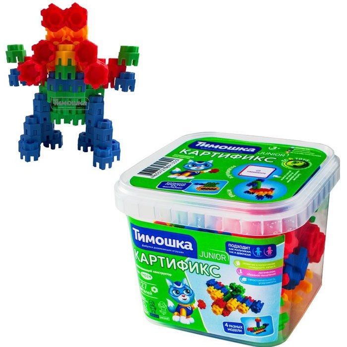ТМ «ТИМОШКА» представляет необычный конструктор КАРТИФИКС. Из деталей конструктора можно собрать 4 разных модели, что позволяет придумать большое количество вариантов веселых сюжетно-ролевых игр.