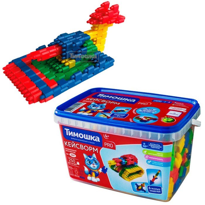 ТМ «ТИМОШКА» представляет необычный конструктор КЕЙСВОРМ. Из деталей конструктора можно собрать 6 разных модели, что позволяет придумать большое количество вариантов веселых сюжетно-ролевых игр.