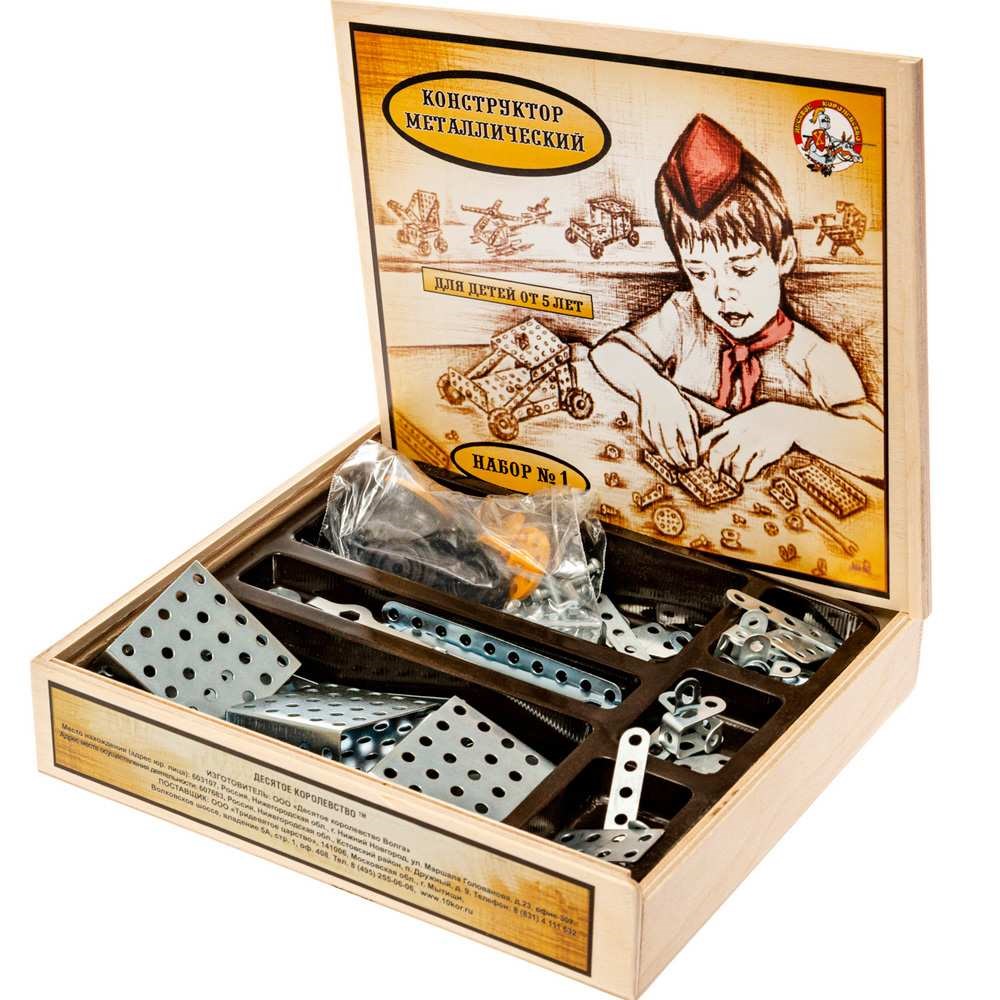 Конструктор №1 от торговой марки "Десятое королевство" представляет собой классический металлический конструктор. В комплекте есть подробная иллюстрированная инструкция с пошаговыми рекомендациями. Начинать работу над конструктором лучше всего с примеров, описанных в ней. Представленные модели являются только примером, так как конструктор раскрывает перед ребенком неограниченные возможности моделирования и создания своих собственных моделей. Он отлично развивает конструкторское, инженерное мышление. Металлические детали очень удобны в применении. Металлический конструктор сложнее пластикового в техническом плане, тем самым, он имеет больший развивающий потенциал. Конструирование развивает логическое и образное мышление, наблюдательность и самостоятельность, а также моторику рук и ловкос