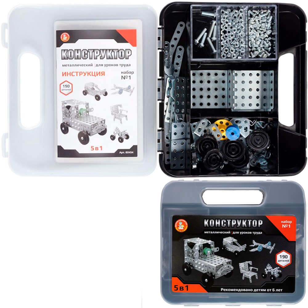 Конструктор металл для уроков труда 5 в 1 №1 в пластиковом чемоданчике 02454