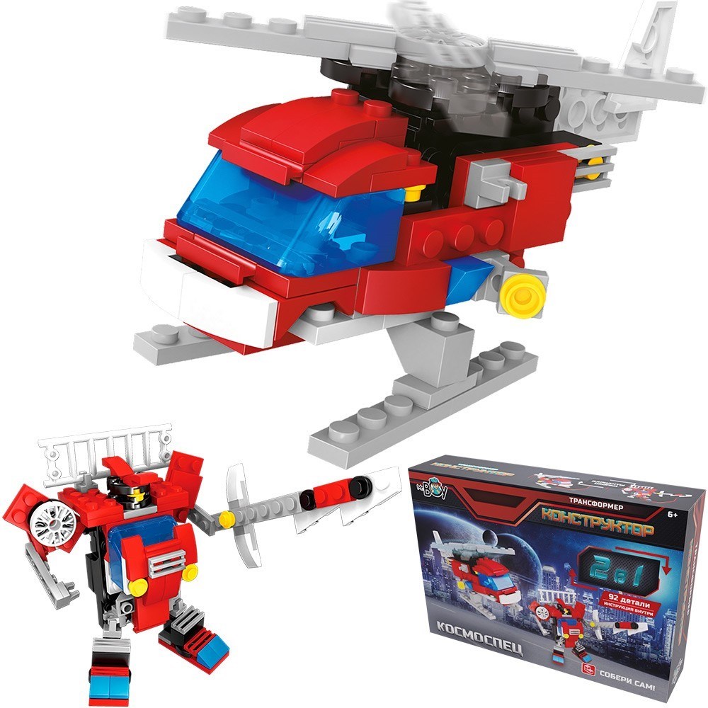 Детям предлагается собрать классного космического робота, который вовремя сражений может трансформироваться в мощный боевой вертолет. Детали легко и плотно соединяются друг с другом (инструкция сборки в комплекте). Конструктор выполнен из качественного, безопасного- (без запаха) пластика.