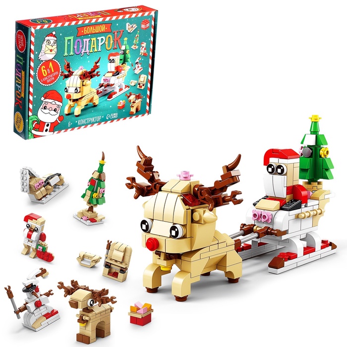 Конструктор новогодний «Большой подарок. Сани с оленем», 6 в 1, УЦЕНКА