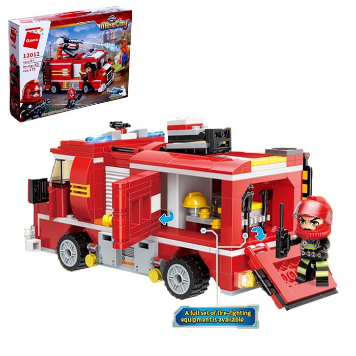 Конструктор Огнеборцы «Пожарная машина», стреляет водой, 3 минифигуры и 370 деталей, уценка