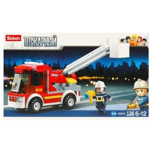 Конструктор пласт. пожарная машина с фигуркой, 136дет. в русс. кор. в кор.72шт