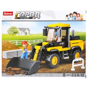 Конструктор пласт. трактор-погрузчик с фигурками, 212дет. в русс. кор.