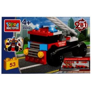 Конструктор ПОЖАРНАЯ МАШИНА 2в1 (инерция), 53 дет. Город мастеров
