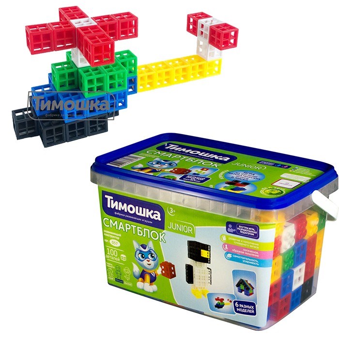 Конструктор "Смартблок" - увлекательное занятие для малышей от 3 лет. В наборе - 100 разноцветных кубиков с прорезями и отверстиями, которые легко и при этом надежно соединяются друг с другом в причудливые конструкции. Необычная форма деталей, а также особенности их сборки друг с другом позволяют малышу потренировать навыки логического и пространственного мышления, мелкую моторику и цветовое восприятие.