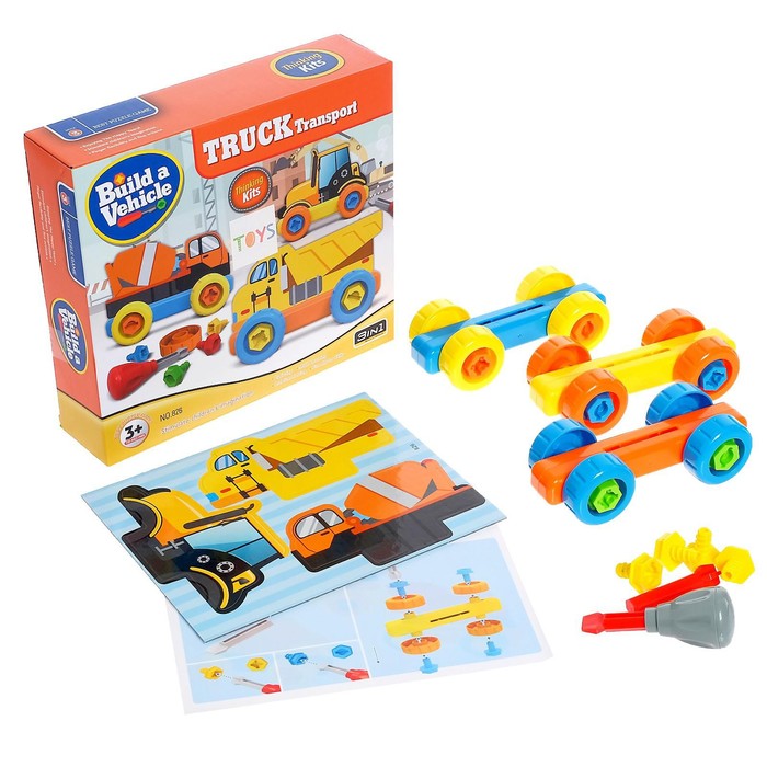 Конструктор винтовой «Строительный транспорт», набор 3 шт., 34 детали, уценка (помята упаковка)