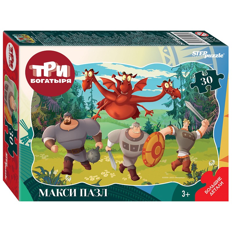 Контурный макси пазл «Три богатыря» c героями одноименного мультфильма.
