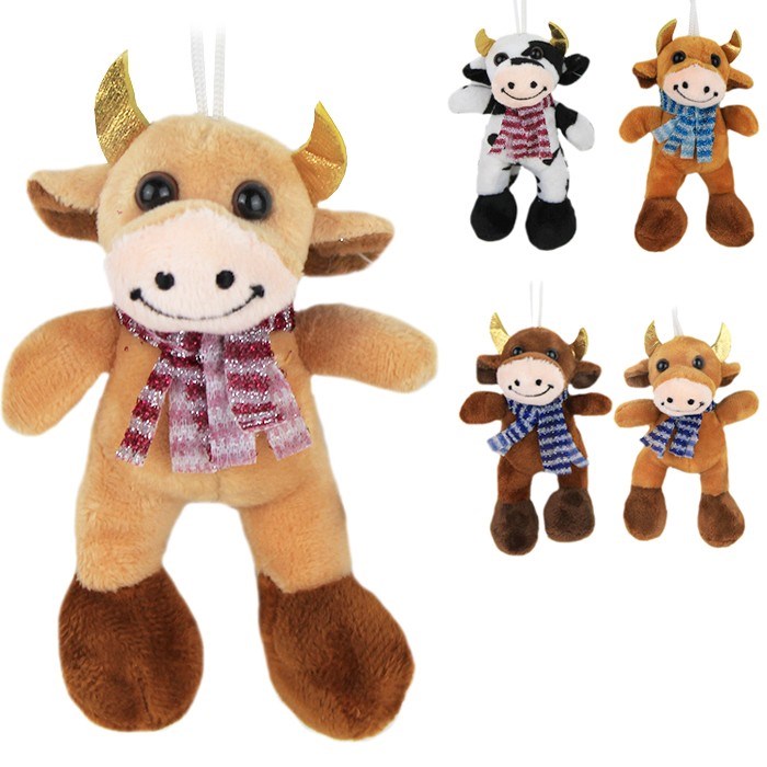 Мягкая игрушка в виде коровы - символ года 2021. Коровка в шарфике станет приятным сюрпризом для детей и взрослых, весь год она будет создавать отличное настроение и напоминать о своем дарителе. Игрушка мягкая и приятная на ощупь, изготовлена из качественных безопасных материалов, сверху расположен подвес в виде шнурка и присоски для крепления к стеклу и другим гладким поверхностям. Расцветки представлены в ассортименте.