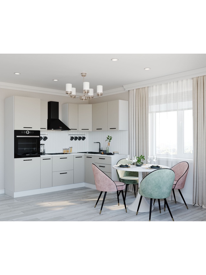Кухонный гарнитур 2400х1600 мм ШАМПАНЬ столешница Марквина белый 26мм