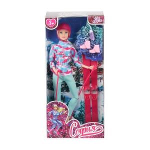Кукла 29см София, лыжи, акс., руки и ноги сгиб., кор. КАРАПУЗ