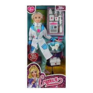 Кукла 29см София ветеринар, питомец, акс., руки и ноги сгиб., кор. КАРАПУЗ