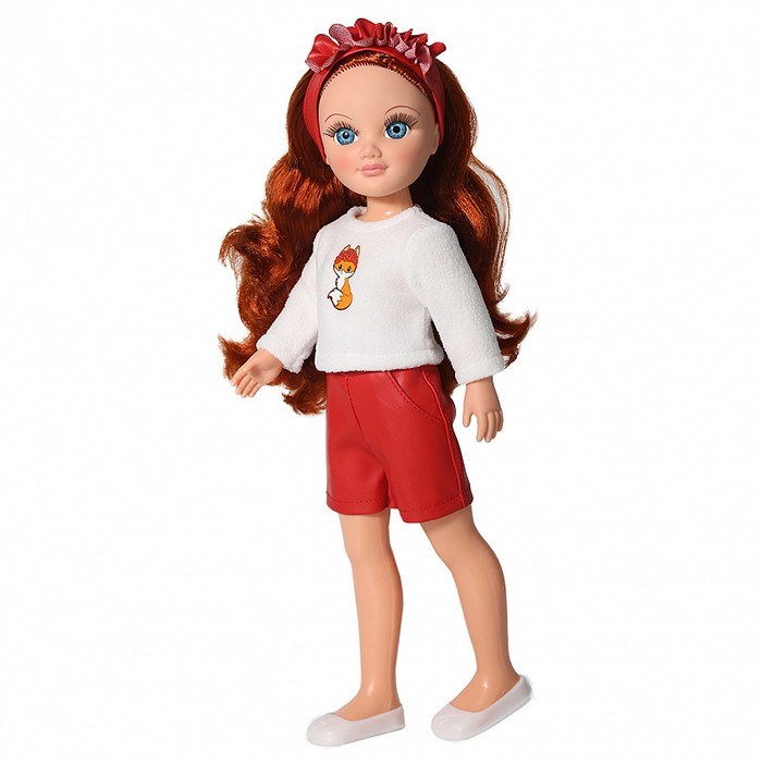 Комплектация: кукла , комплект одежды (белая кофточка с изображением лисёнка, кожаные красные шортики, трусики, туфельки)