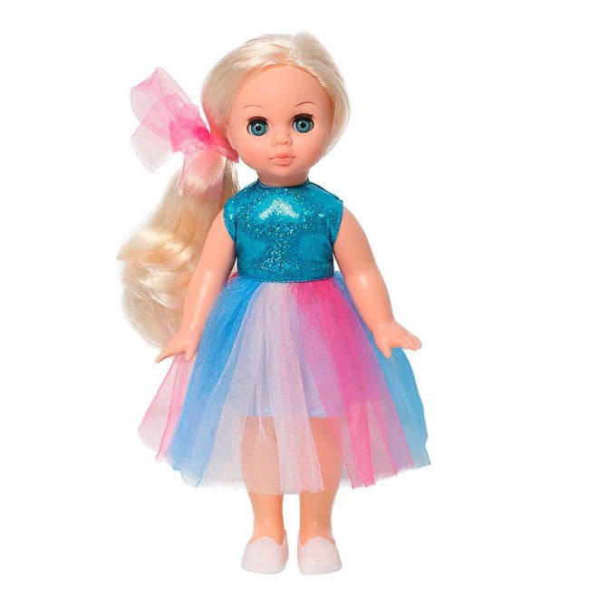 Эля праздничная 3 - настоящая красавица! Девочка будет с удовольствием придумывать множество игр с такой куклой, причесывать и переодевать, меняя ее образ. Одета Эля в нарядное платье с верхом из парчового трикотажа и пышной юбкой из сетки разных тонов, волосы украшает бант из сетки, на ногах туфельки. У куклы вставные закрывающиеся глаза - можно укладывать спать, подвижные руки и ноги - можно садить, ставить на ножки и переодевать. Голова и руки изготовлены из качественного приятного на ощупь винила, туловище и ноги - из пластмассы, звуковые устройства отсутствуют. Благодаря небольшому размеру, Элю можно всюду брать с собой - на прогулку, в гости и детский сад.