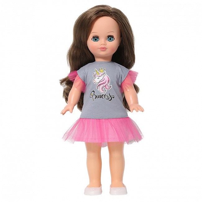 Герда кэжуал 1 - милая куколка с густыми волнистыми волосами, выразительными глазами и пышными ресницами. Она наверняка понравится девочке и станет постоянной участницей детских игр в "дочки-матери" и многих других. Герда одета в платье с трикотажным верхом, украшенное наклейкой с единорогом и надписью "Princess", низ платья выполнен из сетчатой ткани, края рукавов также обработаны сетчатой тканью, на ногах - туфли-балетки. Ручки и голова куклы выполнены из качественного, приятного на ощупь винила, ножки и тело - из пластмассы, глаза - вставные закрывающиеся. Благодаря тому, что у Герды подвижные руки и ноги, ее можно садить, укладывать спать и переодевать, что разнообразит игровые сюжеты и помогает развитию воображения и сюжетно-образного мышления ребенка. Кукла озвучена, при нажатии на звуковое устройство произносит несколько фраз.