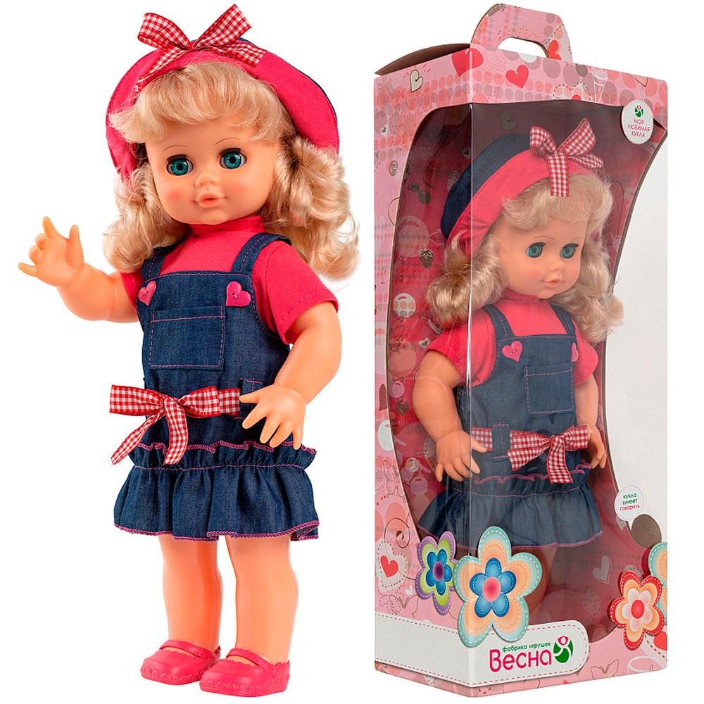 Кукла Инна Весна 21 озвучена, имеет вставные закрывающиеся глаза и пропорциональное тело. Ручки и голова выполнены из эластичного, приятного на ощупь винила, а туловище и ноги из пластмассы.