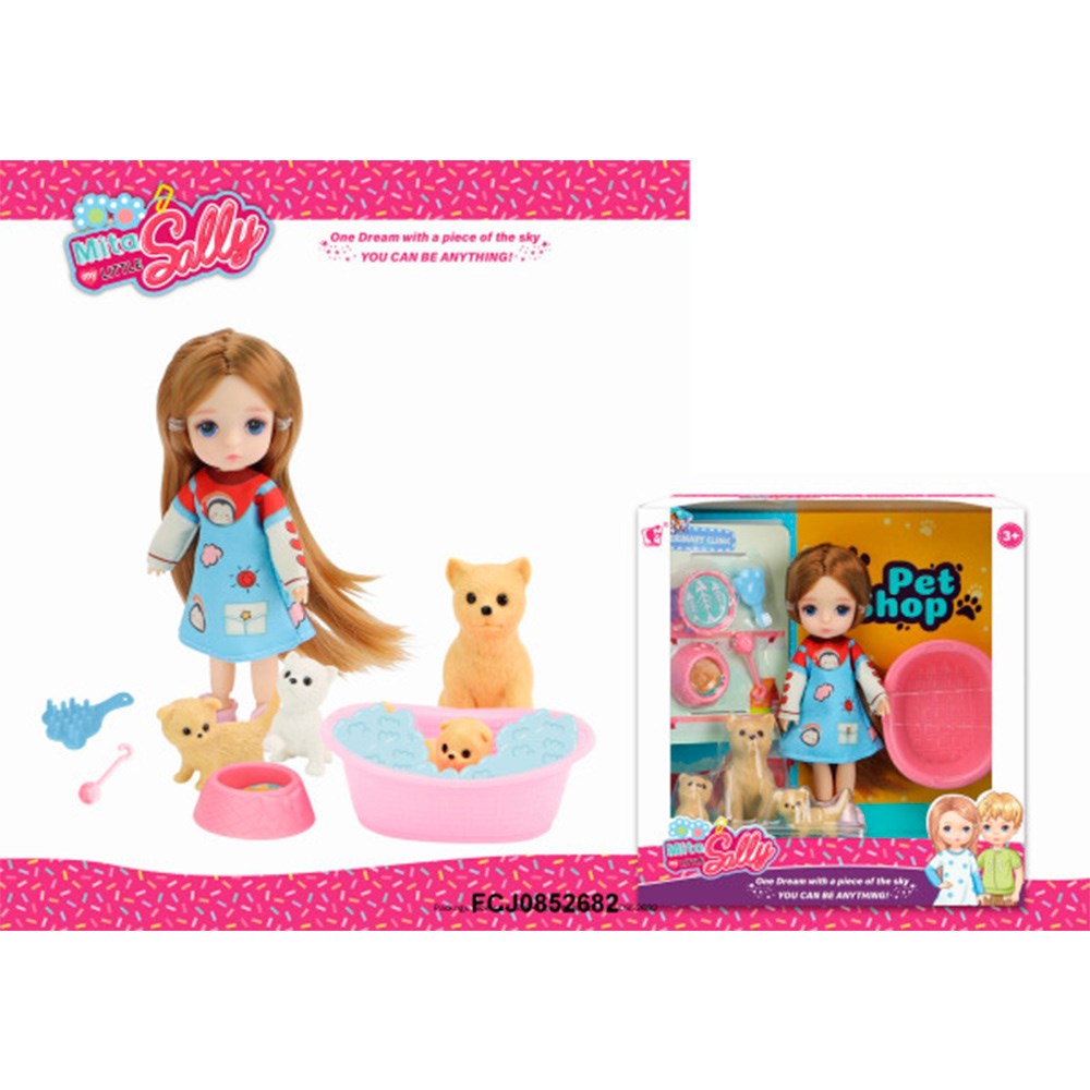 Комплектация: кукла - 1 шт, игровые аксессуары - 5шт, собака - 3 шт.