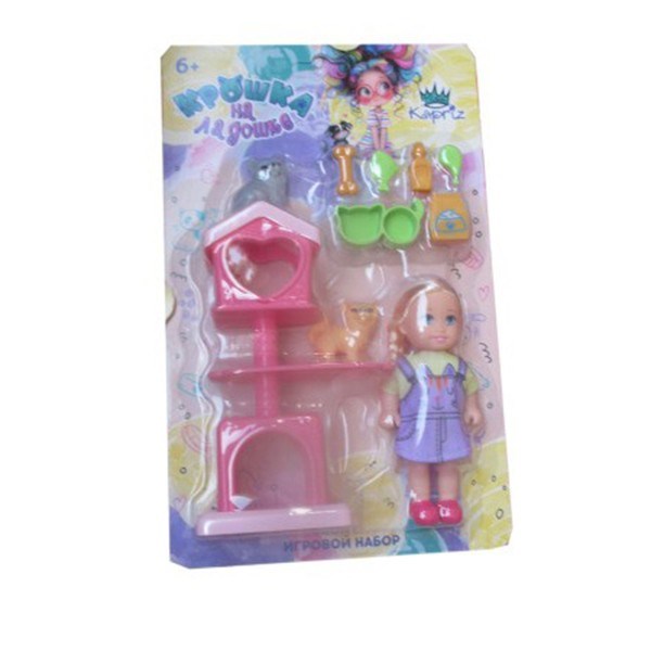 Комплектация: кукла - 1 шт, игровые аксессуары - 7 шт, фигурки животных - 2 шт, домик - 1 шт