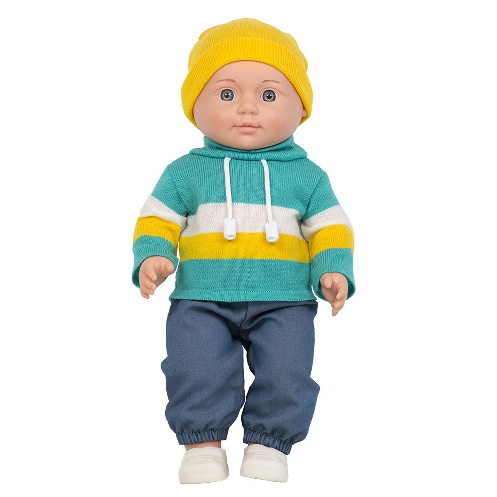Комплектация: пупс - 1 шт., брюки - 1 шт., свитер - 1 шт., шапка - 1 шт., кеды - 1 пара