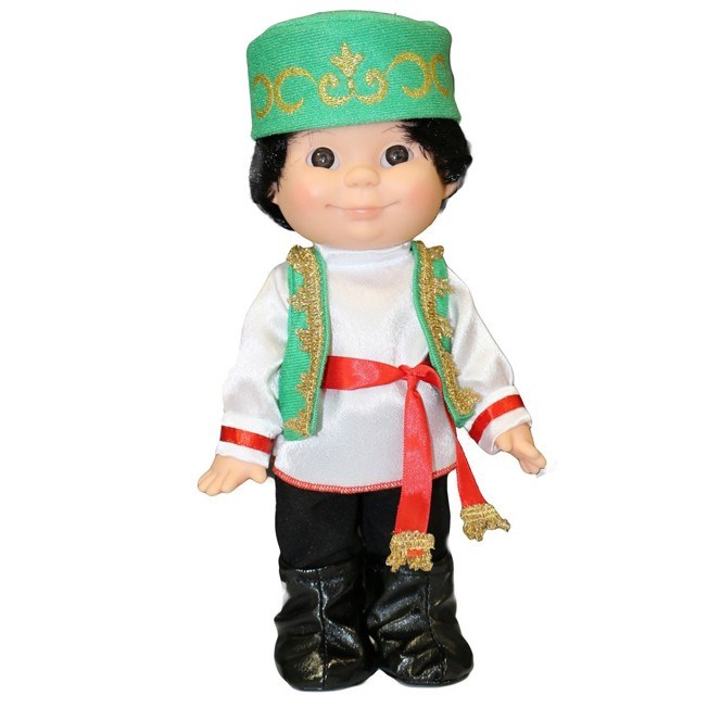 Кукла Веснушка Марат Весна - кукла в стилизованном этническом татарском костюме. Комплект одежды состоит из рубашки, брюк, жилетки, тюбетейки, трикотажных носков, сапог из искусственной кожи, пояса. Производитель оставляет за собой право изменения цветовой гаммы одежды и волос куклы, цвет глаз может варьироваться. Игровые и дидактические возможности куклы: Веснушка Марат Весна может быть так называемой «методической куклой» для обучения детей культурным и национальным особенностям разных народов. Наличие элементов одежды, которые легко снимаются и надеваются, разнообразит возможности сюжетно-ролевых игр с этой куклой, в процессе которых развивается мелкая моторика и творческое воображение ребёнка. Веснушка Марат Весна – замечательный подарок не только для детей, но и для взрослых: благодаря своему задорному образу кукла может стать отличным сувениром для хорошего настроения.