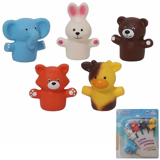 Пальчиковый театр "Герои любимых стихов" - это увлекательное занятие, которое будет интересно как малышам, так и ребятам постарше. В комплект входят 5 фигурок зверюшек: бычок, котёнок, мишка, зайчик, слон, выполненные из безопасного нетоксичного материала - ПВХ-пластизоли, поэтому не боятся воздействия воды. Фигурки подойдут как для детских пальчиков, так и для взрослых. Игра с пальчиковым театром развивает сенсорную сферу, мелкую моторику, воображение, речевые навыки и актерское мастерство.