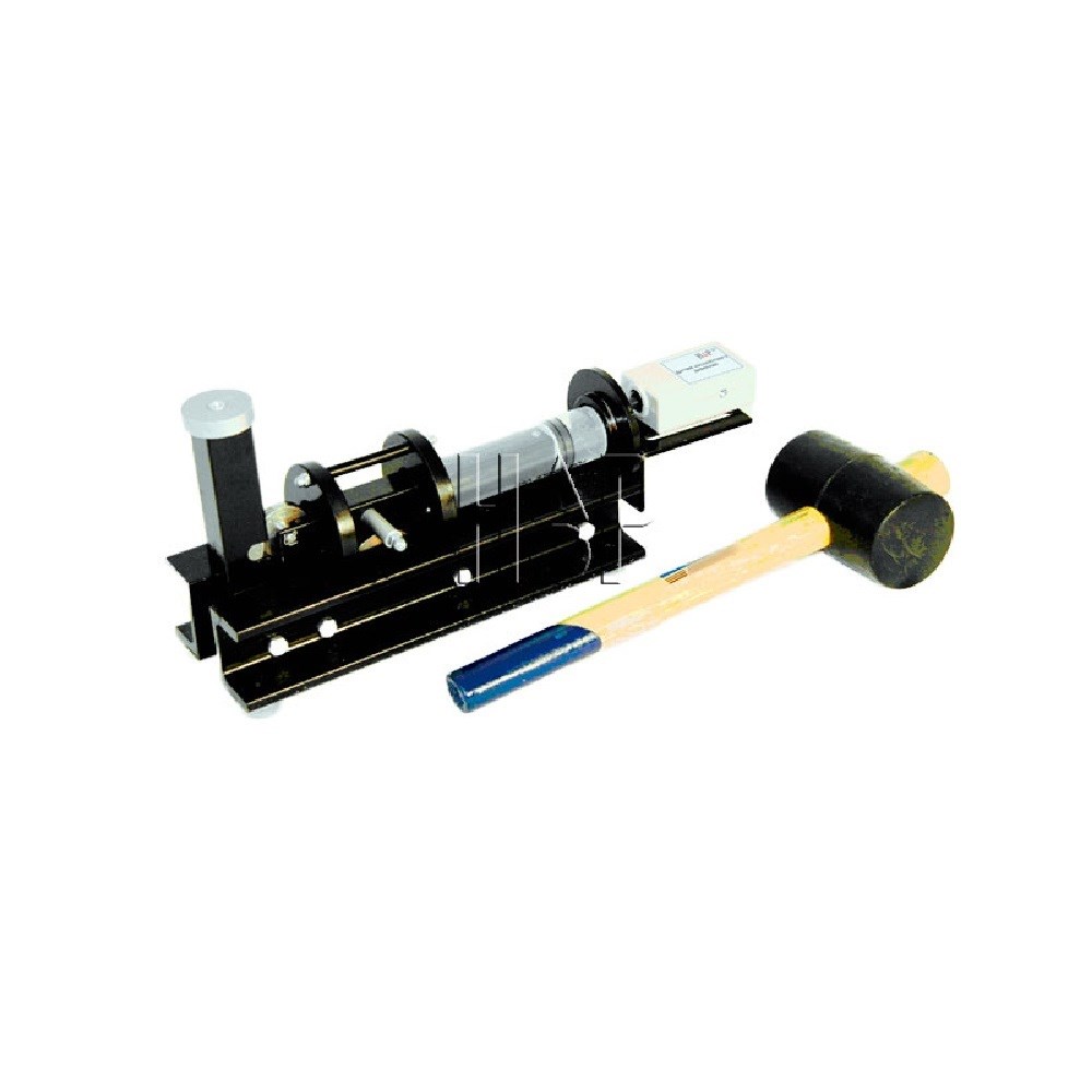 Герметичный резервуар для газа с поршнем смонтирован на массивном основании. Контроль давления воздуха в резервуаре осуществляется с помощью датчика абсолютного давления. Условия адиабатического процесса обеспечиваются при предельно быстром изменении объема резервуара. Для быстрого перемещения поршня используется клин, который с помощью молотка вбивается между толкателем поршня и стенкой корпуса.