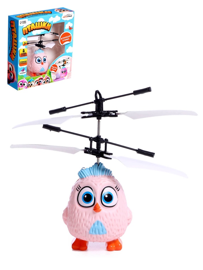)Летающая игрушка «Пташки» — замечательная игрушка, которая подойдёт для детей от 3 лет. «Пташки» подходят для игр дома и на улице, ведь управлять птенцом проще простого! В игрушке установлен сенсор, который срабатывает при контакте с твёрдой поверхностью. После соприкосновения с рукой, ногой, головой или полом супербол сразу устремляется вверх.