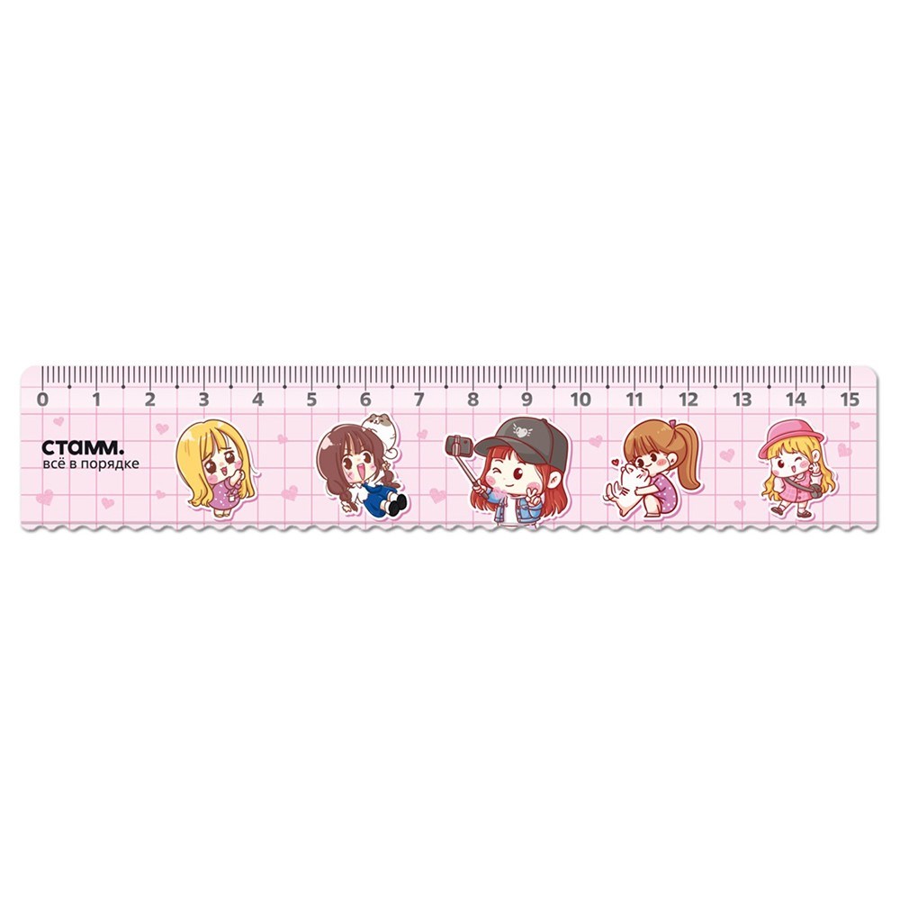 Линейка пластик 15см СТАММ Подружки с волнистым краем, 366424