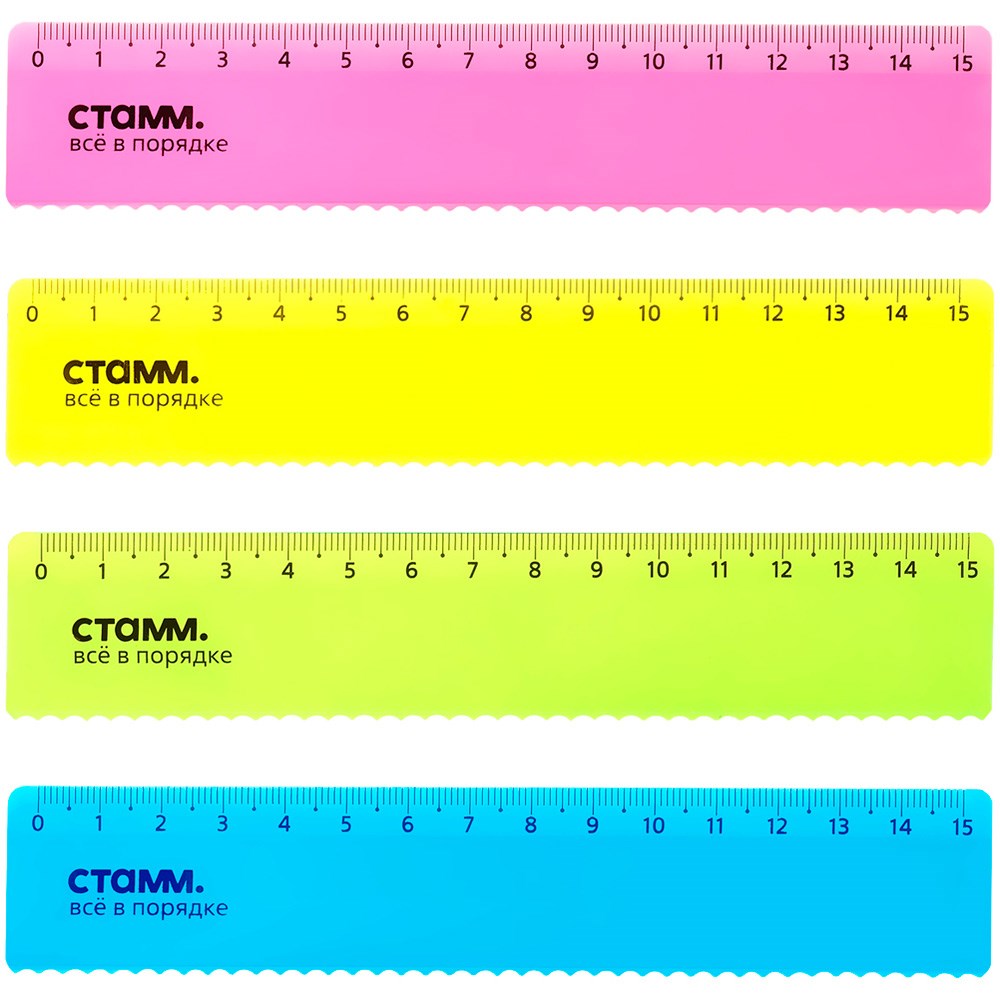 Линейка пластик 15см СТАММ с волнистым краем, прозрачная, неоновые цвета, ассорти 351446