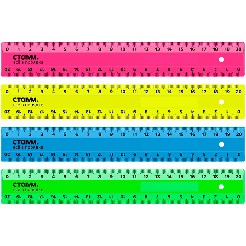 Линейка пластик 20см СТАММ 2 шкалы, непрозрачная, неоновые цвета, ассорти351472