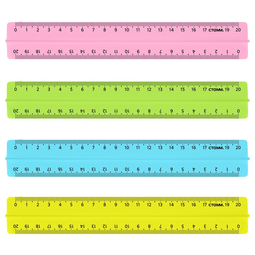 Линейка пластик 20см СТАММ пластиковая, с держателем, прозрачная, неоновые цвета, ассорти 083864