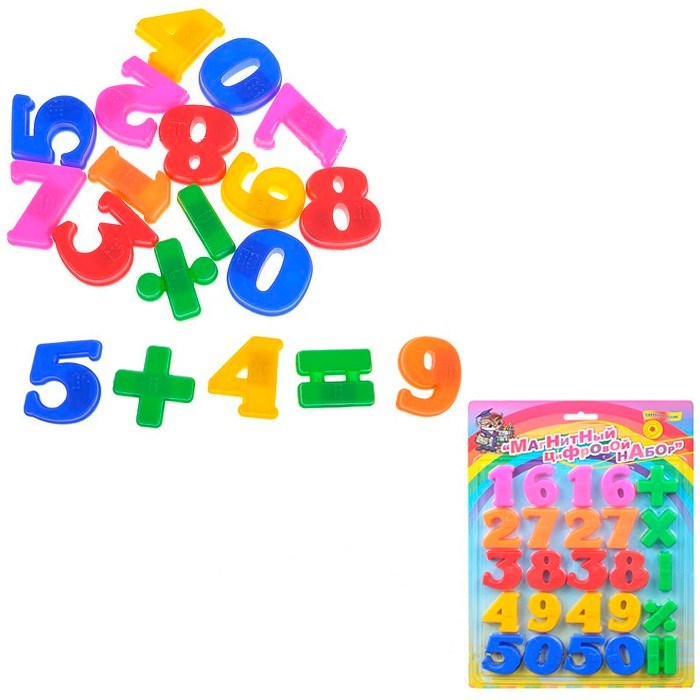 Набор – магнитная математика. Состоит из 5 математических знаков, 20 цифровых знаков (в каждый из которых встав-