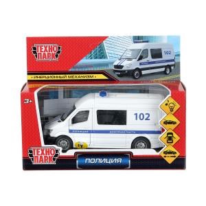 Машина металл свет-звук ПОЛИЦИЯ 14,5 см, двери, багаж, инерц, бел, кор. Технопарк