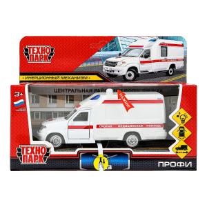 Машина металл свет-звук УАЗ ПРОФИ СКОРАЯ 14 см, двери, инерц, белый, кор. Технопарк