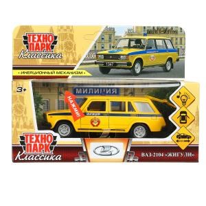 Машина металл свет-звук ВАЗ-2104 ЖИГУЛИ МИЛИЦИЯ 12 см,двери,желтый, кор. Технопарк