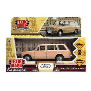Машина металл ваз-2102 12 см, двери, багаж, инер,бежевый, кор. Технопарк