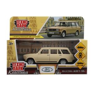 Машина металл ВАЗ-2104 ЖИГУЛИ длина 12 см, двери, багаж, инерц,бежевый, кор. Технопарк