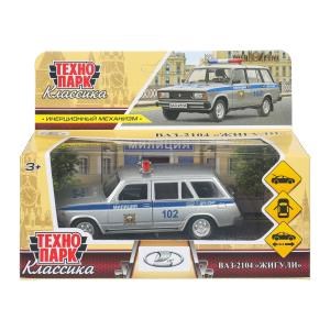 Машина металл ВАЗ-2104 ЖИГУЛИ ПОЛИЦИЯ 12 см, двери, багаж, инерц, кор. Технопарк