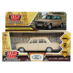 Машина металл ВАЗ-2106 ЖИГУЛИ длина 12 см, двери, багаж, инерц,бежевый, кор. Технопарк