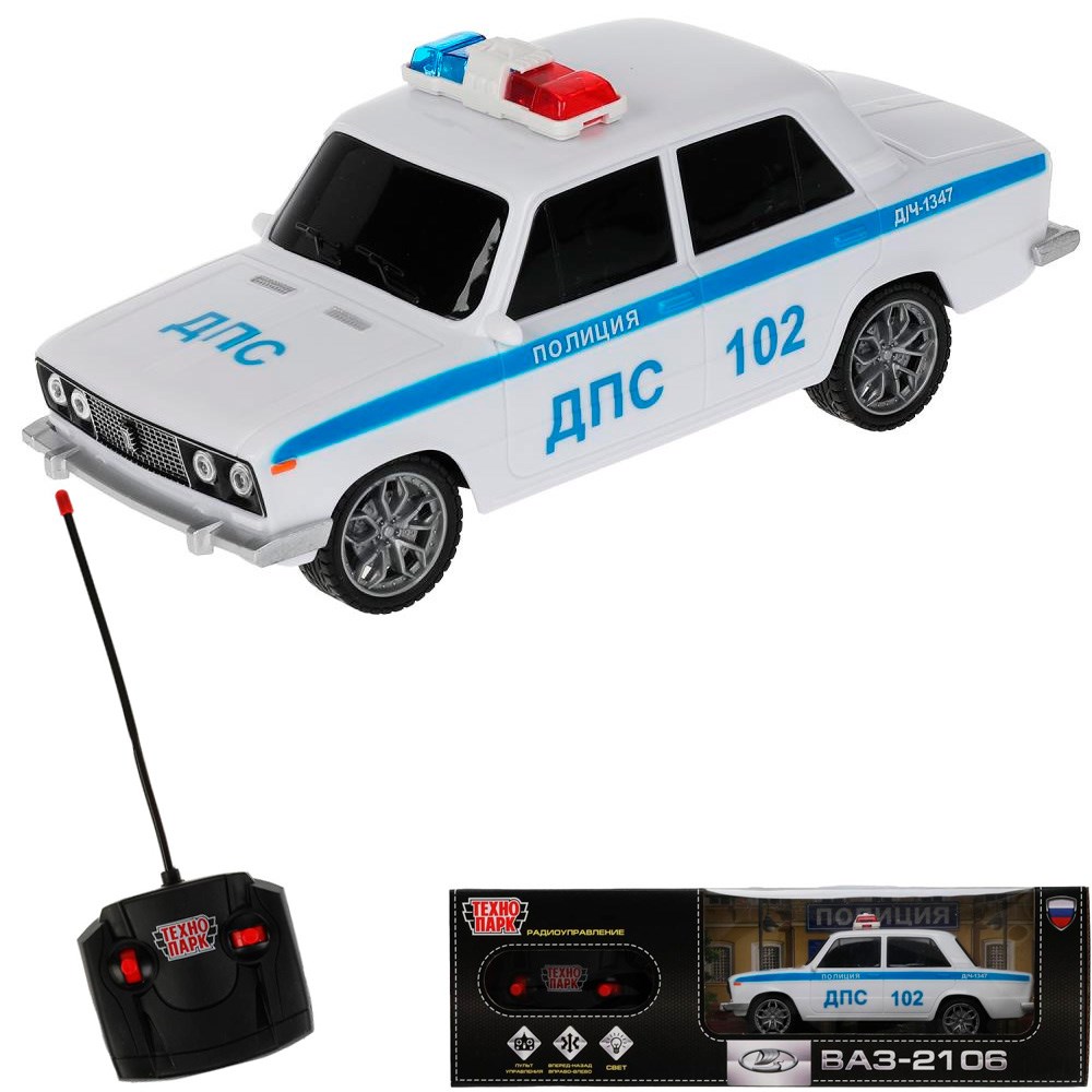 Машина на радиоуправлении VAZ2106-18L-POL-WH ВАЗ-2106 ПОЛИЦИЯ 18 см, свет, бел Технопарк в кор /24/