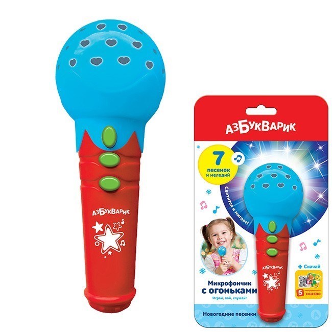 Микрофончик Новогодние песенки с огоньками голубой 4680019284774