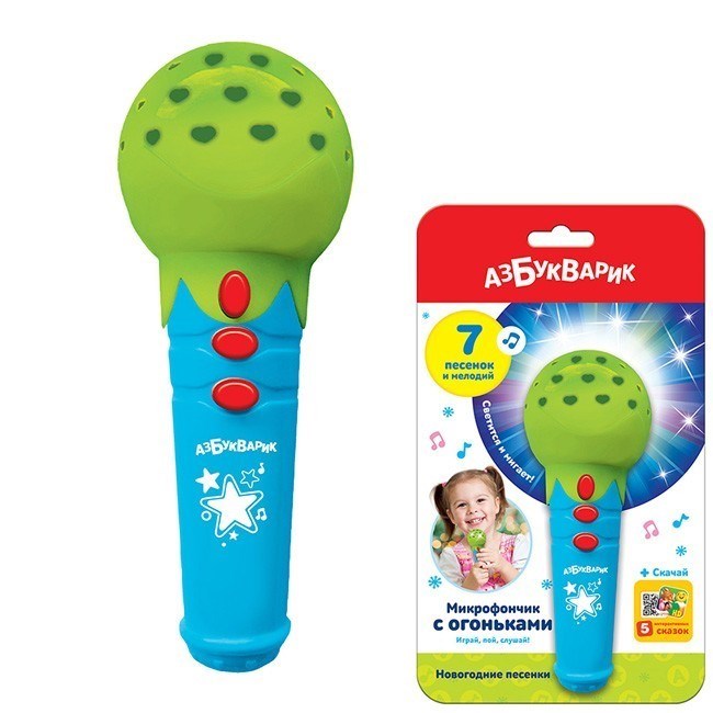 Микрофончик Новогодние песенки с огоньками зеленый 4680019284781