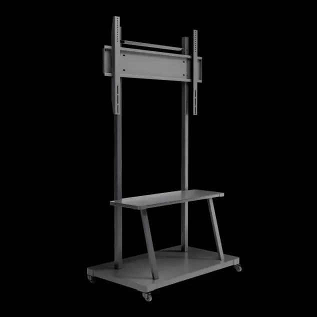 Для удобного перемещения по аудитории стойка оснащена колесиками с фиксаторами, а так же полкой для размещения дополнительного оборудования или учебных материалов.