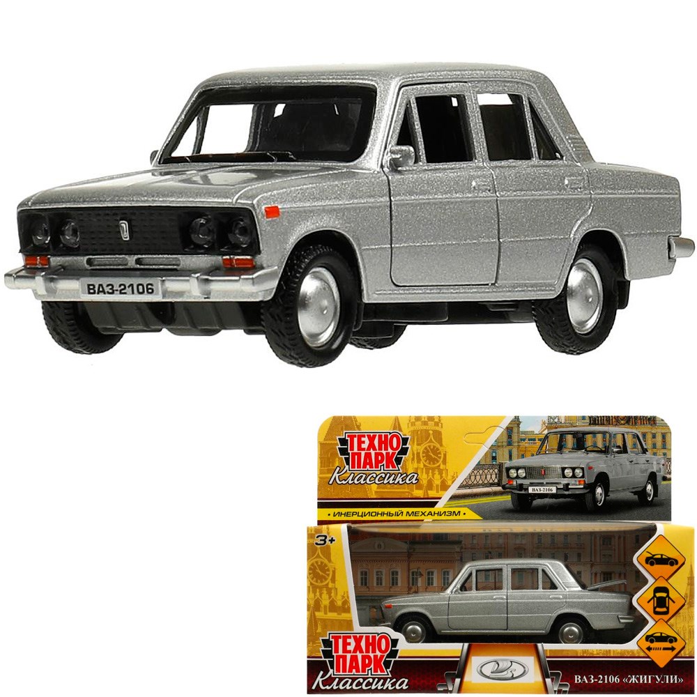 Модель 2106-12-SR ВАЗ-2106 жигули 12 см, двери, багаж, инерц, серебристый Технопарк в кор.