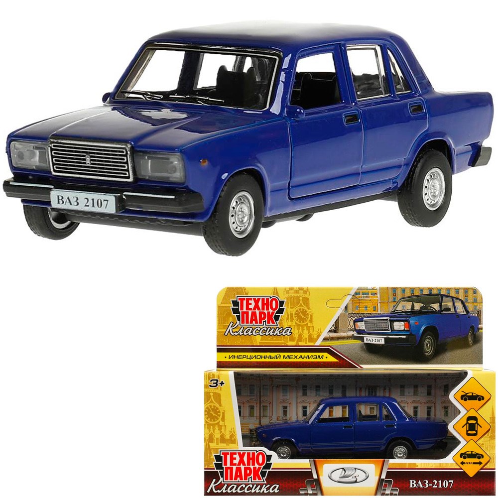 Модель 2107-12-BU1 ВАЗ-2107 длина 12 см, двери, багаж, инерц, темно-синий Технопарк