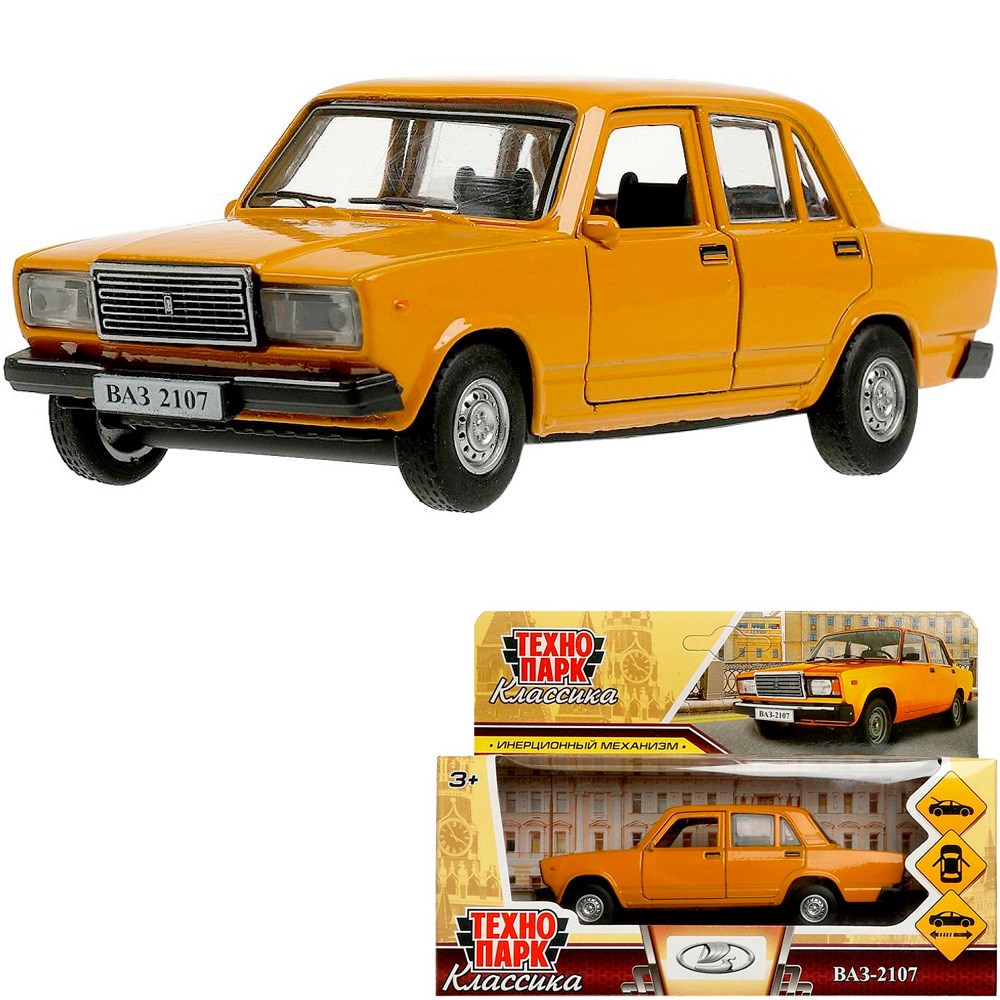 Модель 2107-12-YE ВАЗ-2107 длина 12 см, двери, багаж, инерц, желтый Технопарк в кор.