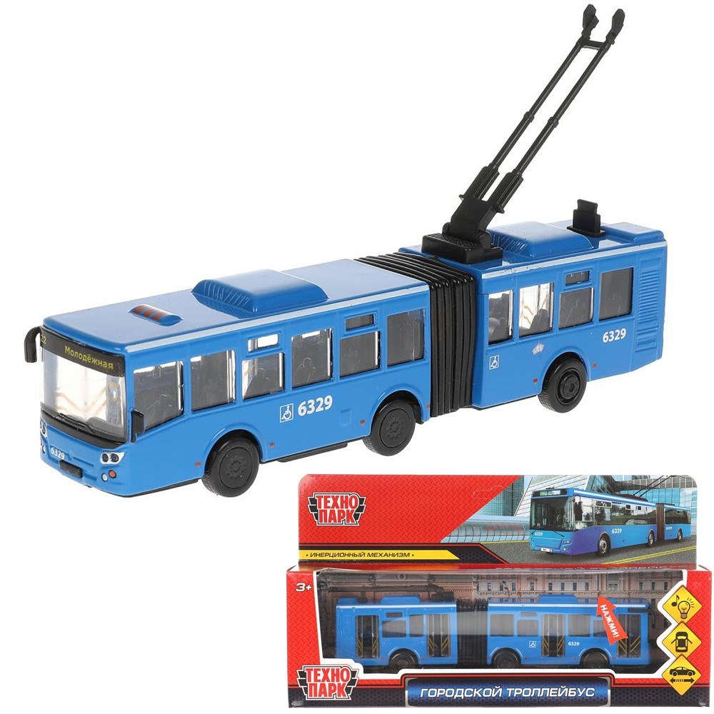 Модель TROLLRUB-19SL-BU Городской треллейбус 19 см, двер, синий, инерц Технопарк в кор.