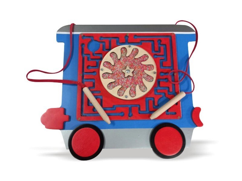 - Доска выполнена в форме вагона, поэтому ее можно использовать как развивающий декор в комнату. Она соединяется с другими модулями.