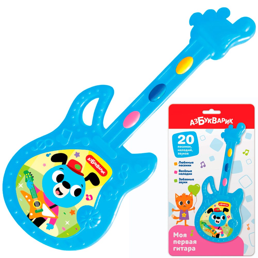 Музыкальная игрушка «Моя первая гитара» от ТМ «Азбукварик» поднимет своими настроение весёлыми мелодиями!